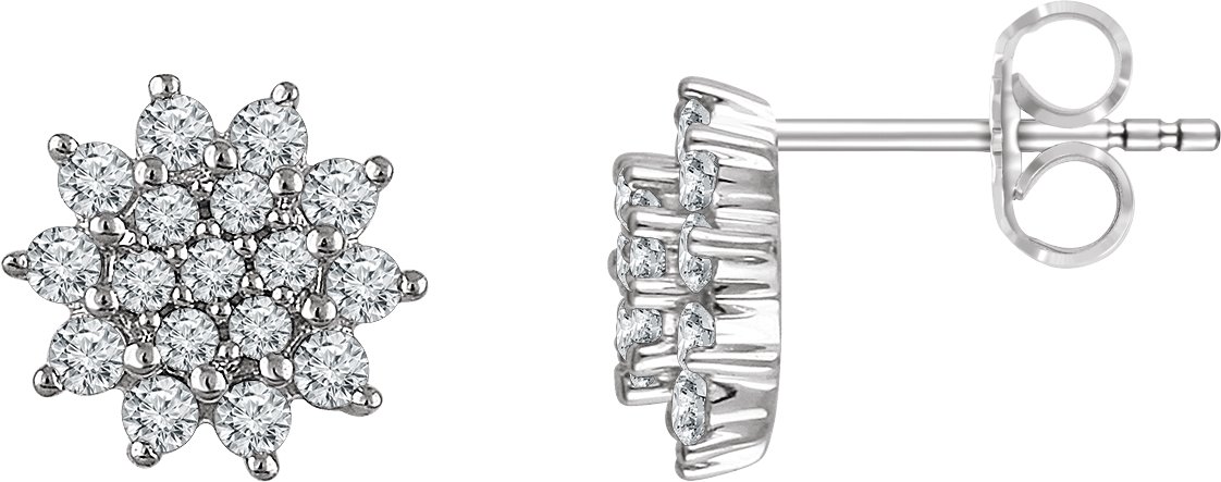 1/2 CTW Natural Diamond Cluster Stud Earrings With Backs – 14K White Gold