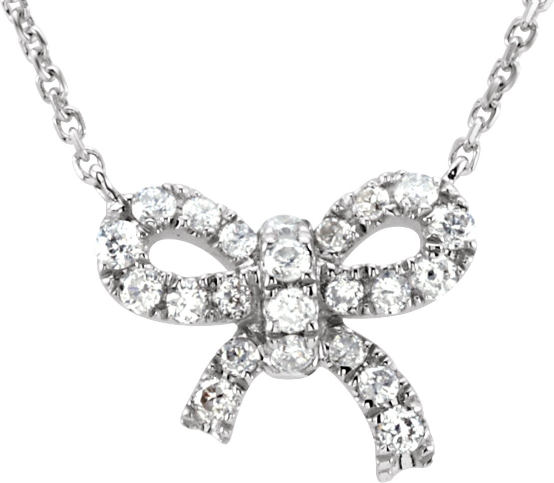 1/6 CTW Natural Diamond Bow Necklace – 14K White Gold