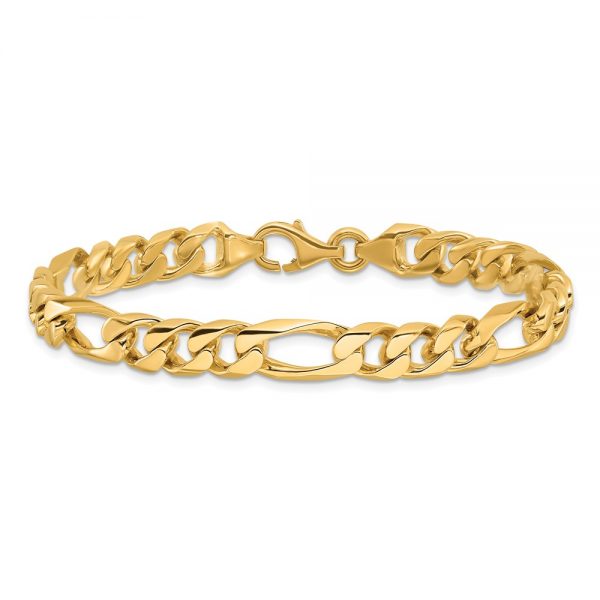 14K 8 inch 8mm Hand Polished Figaro Link with Fancy Lobster Clasp Bracelet