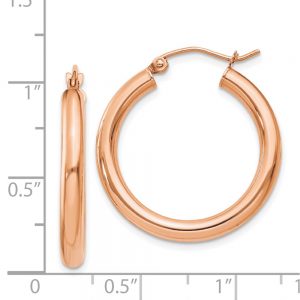14k Rose Gold Polished 3mm Lightweight Tube Hoop Earrings