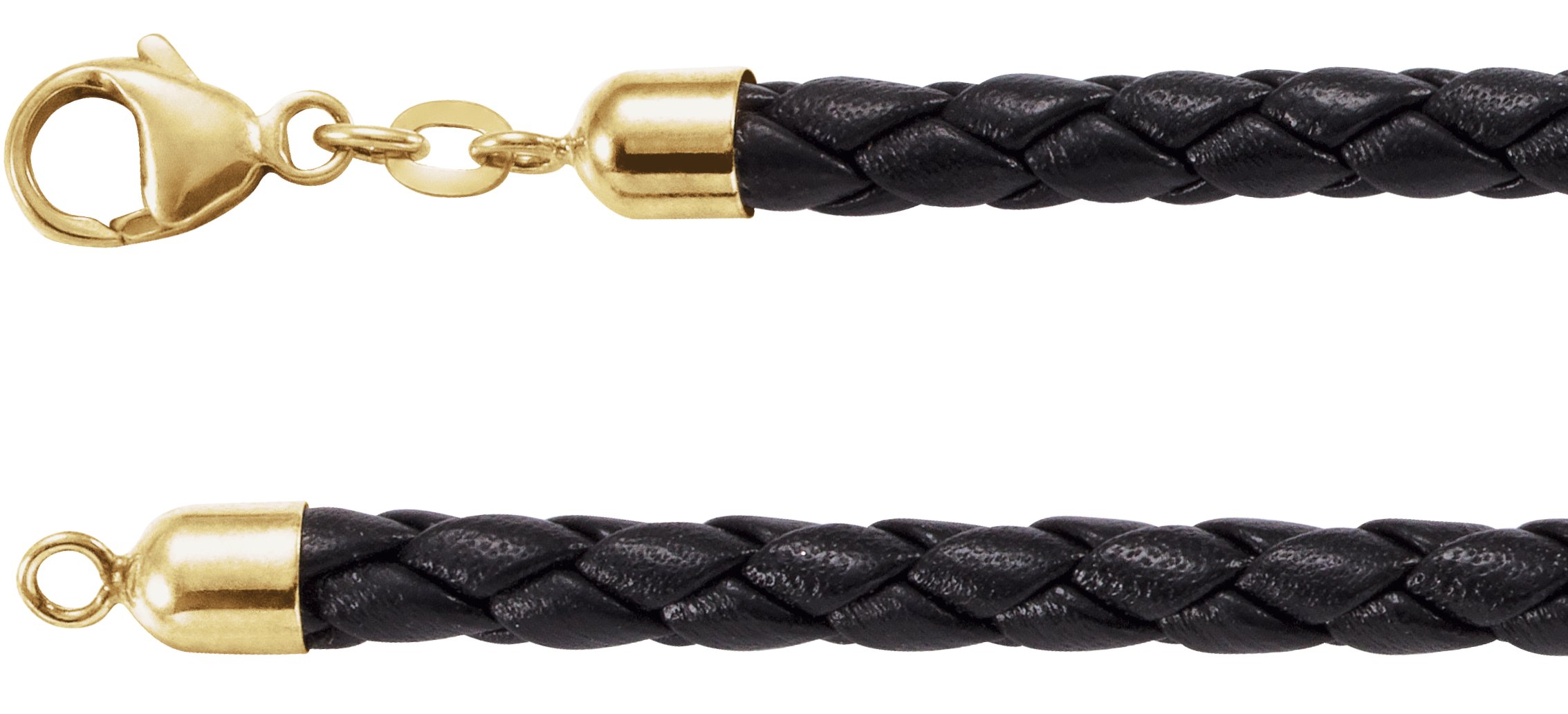 5 mm Black Braided Leather Cord Necklace – 14K Yellow Gold - Image 3