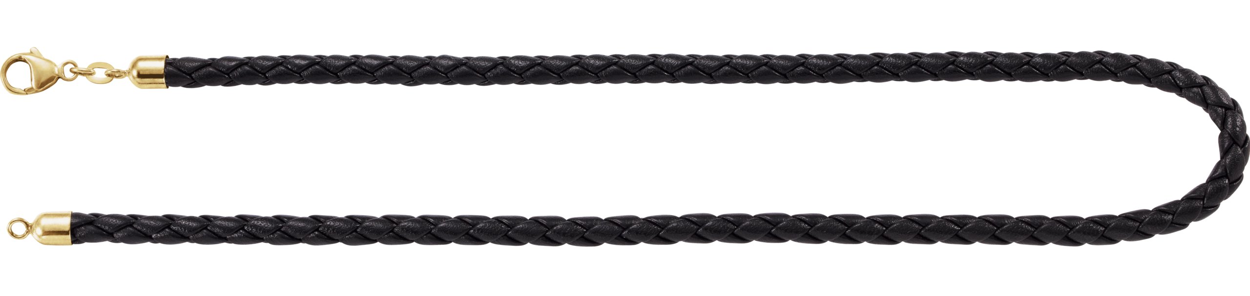 5 mm Black Braided Leather Cord Necklace – 14K Yellow Gold