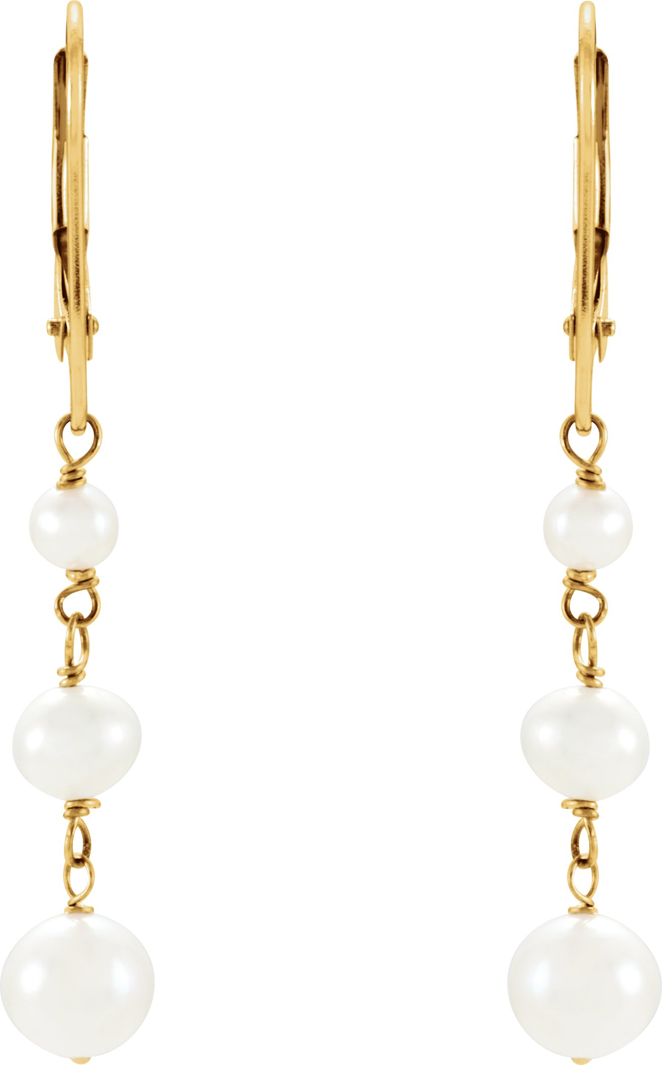 Cultured White Freshwater Pearl Earrings – 14K Yellow Gold - Image 2