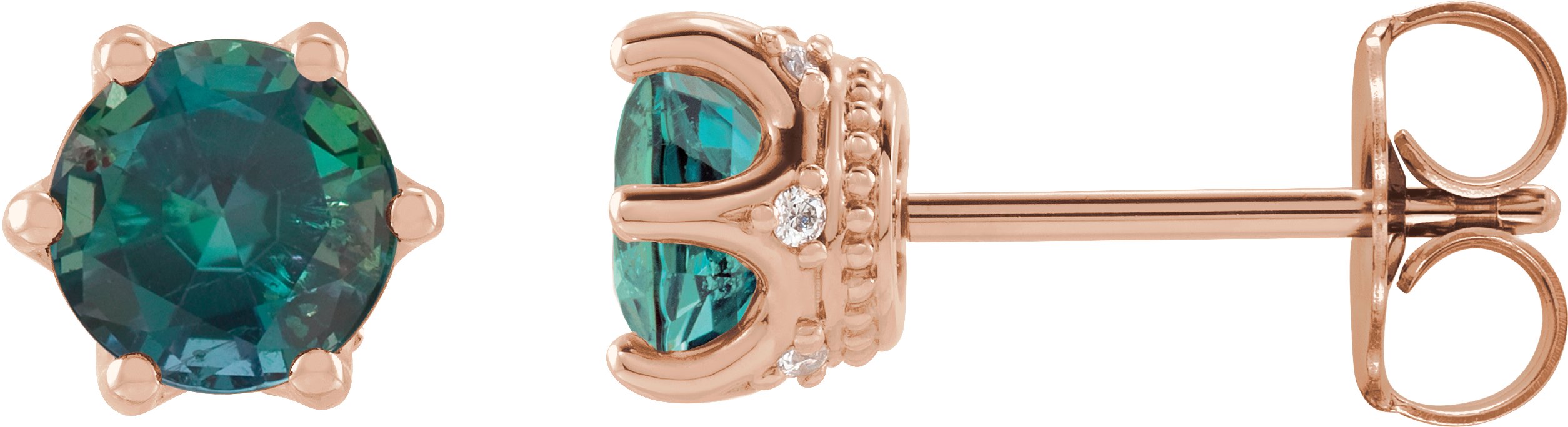 Round 6-Prong Accented Crown Stud Earrings