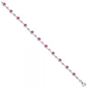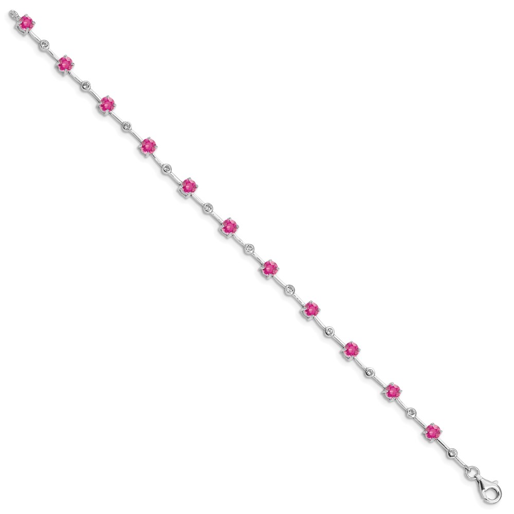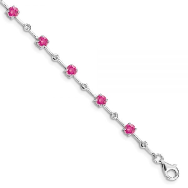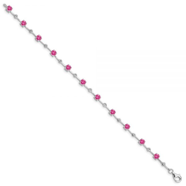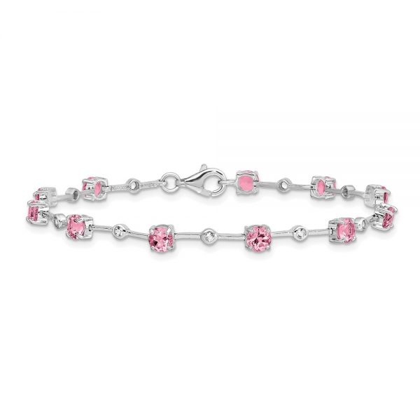 Sterling Silver Rhodium-plated Pink Tourmaline Bracelet