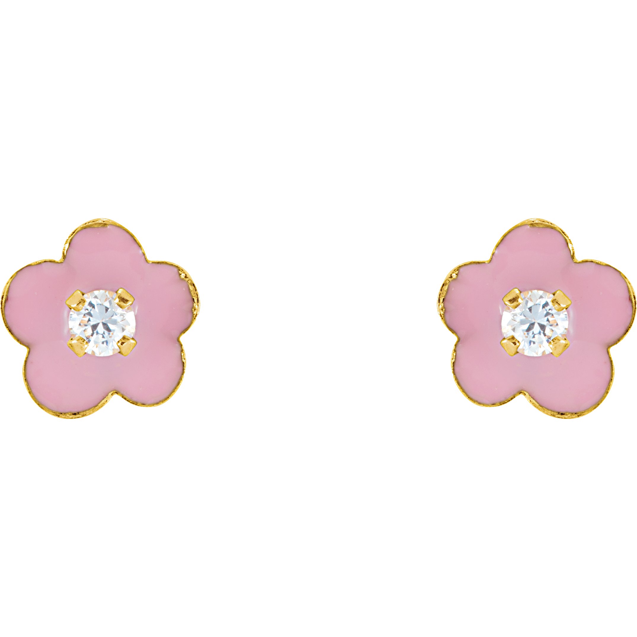 Youth Cubic Zirconia Flower Enamel Earrings With Backs – 14K Yellow Gold